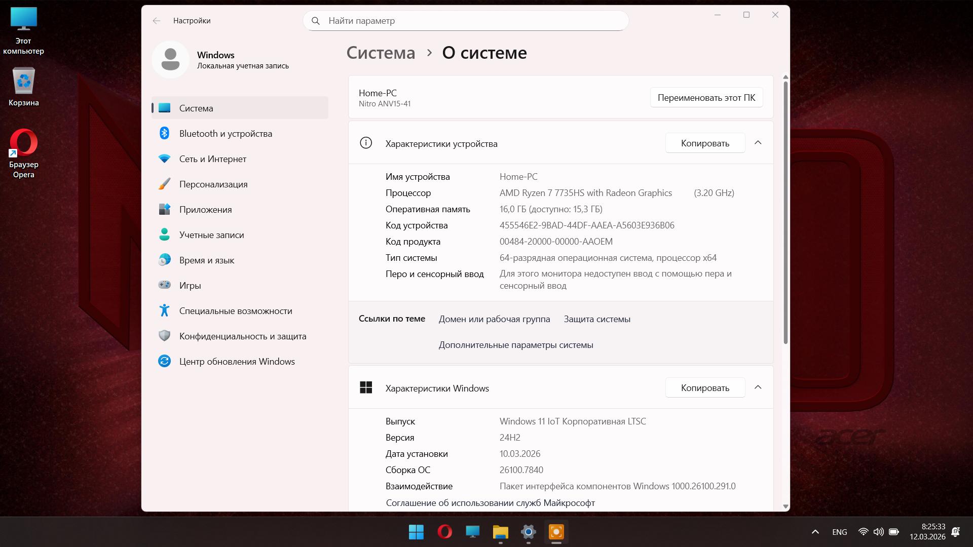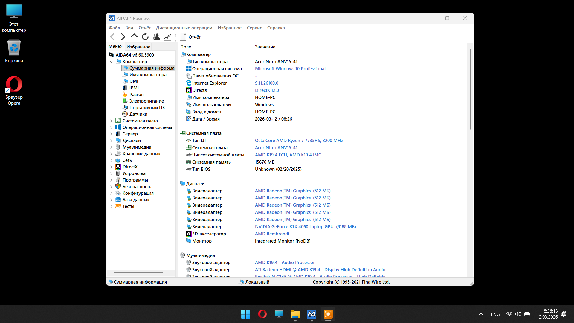 Операционная система: Windows 11