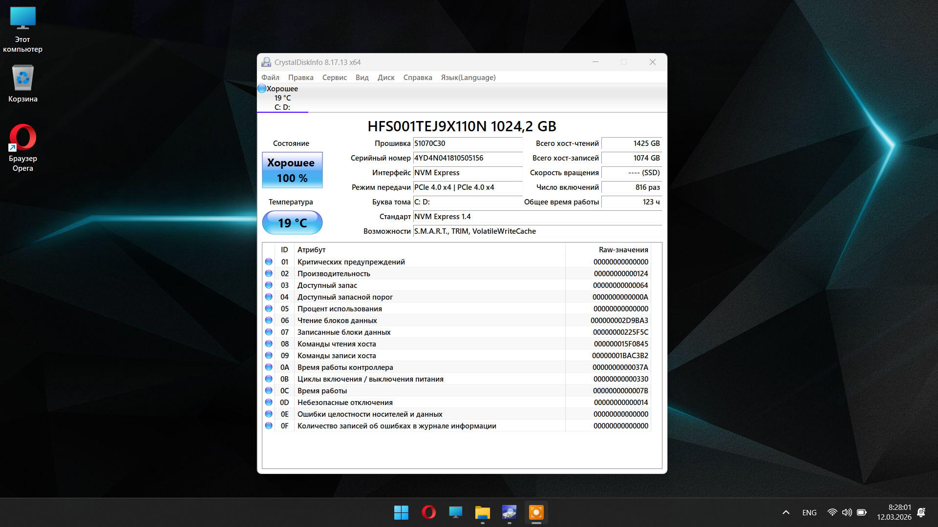 Накопитель: 1024 Gb (1Tb) SSD NVMe PCIe 4.0
