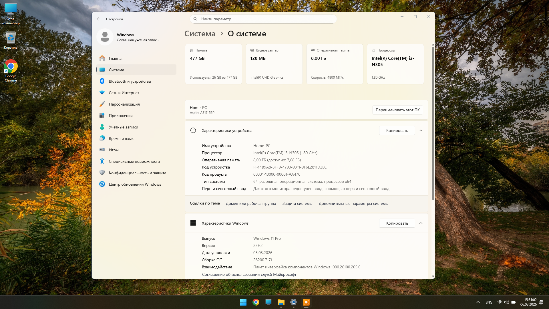 • Процессор: Intel Core i3-N305 (8 ядер / 8 потоков)