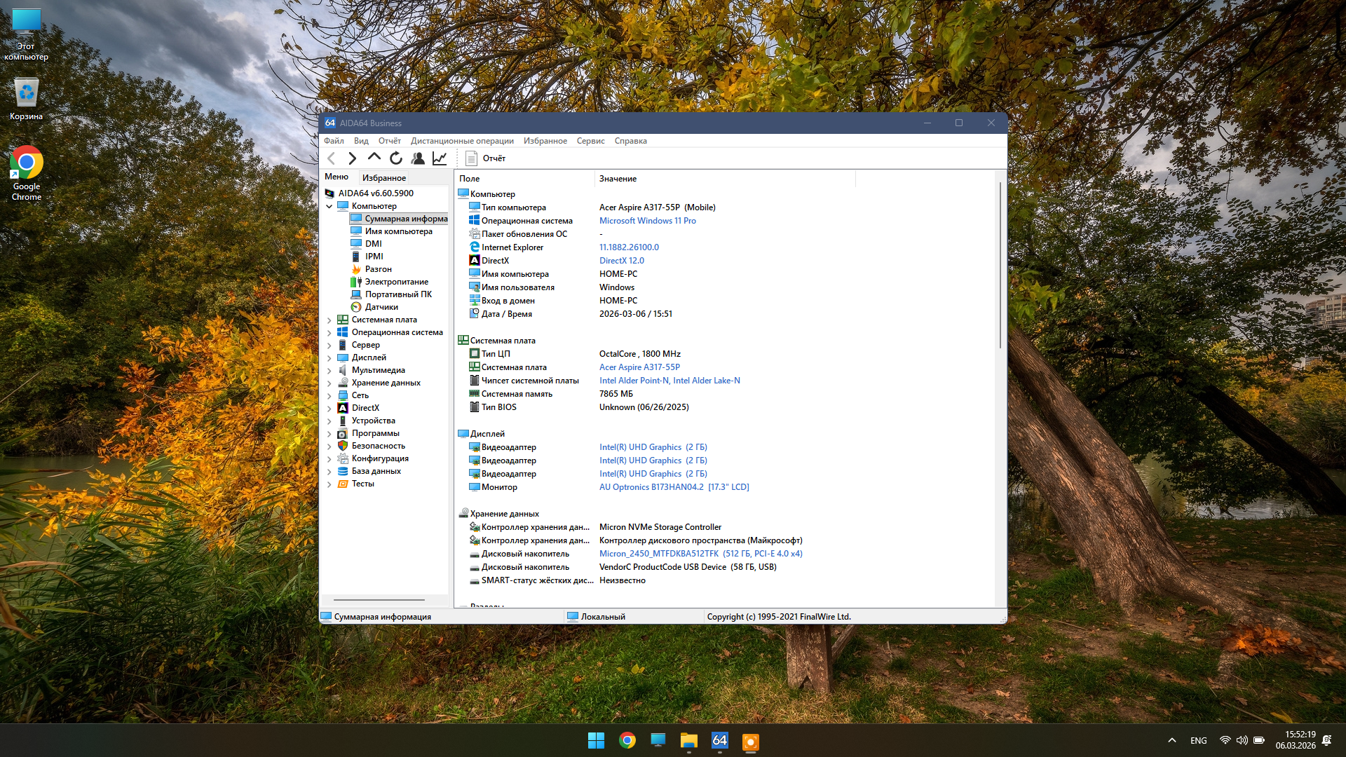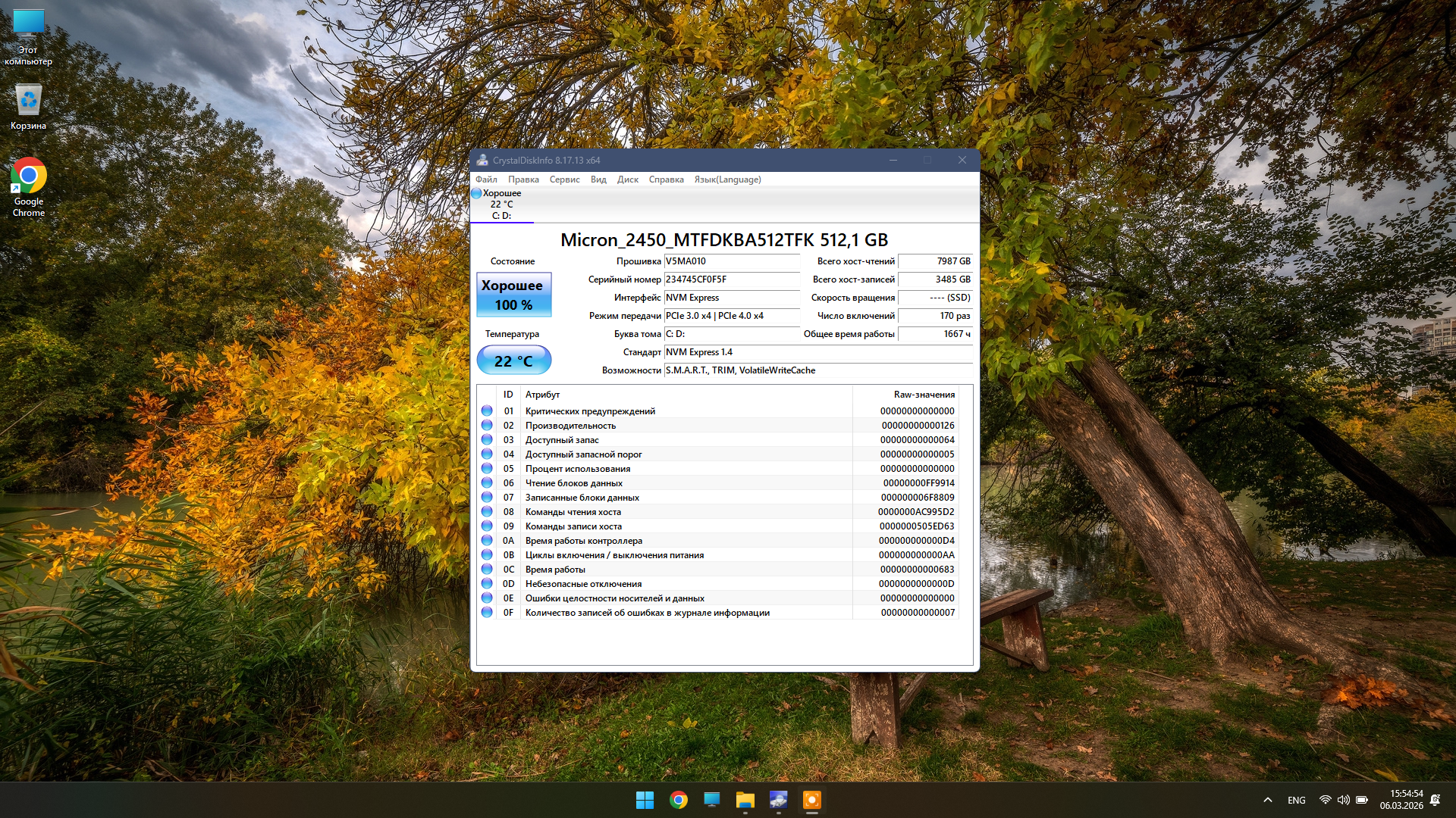 • Накопитель: 512 Gb SSD NVMe PCIe (Micron)
