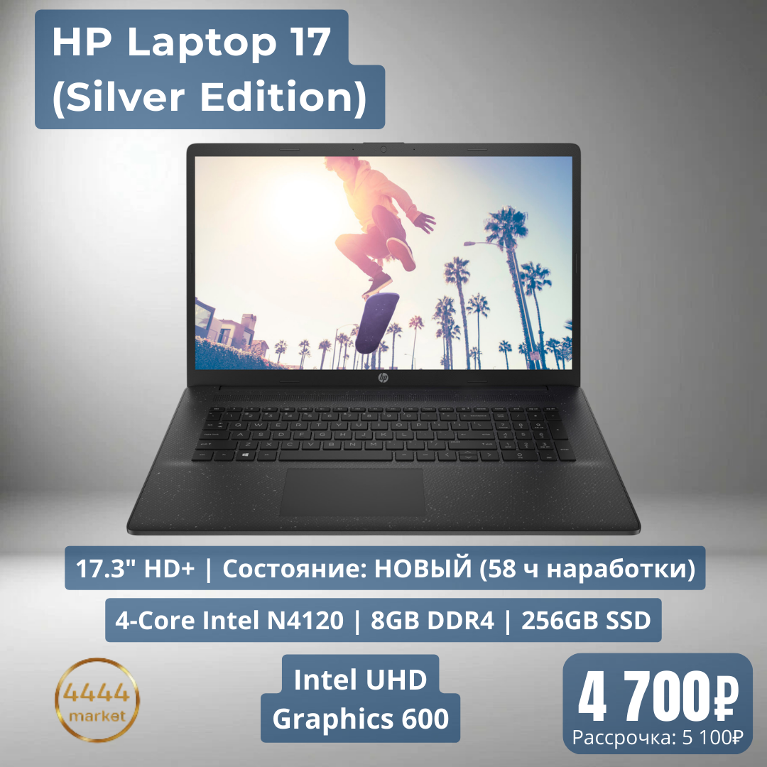 Магазин 4444.MARKET предлагает отличный ноутбук HP Laptop 17 в редком для ПМР формате 17.3 дюйма. Состояние устройства — безупречное, наработка диска всего 58 часов (фактически не эксплуатировался).
