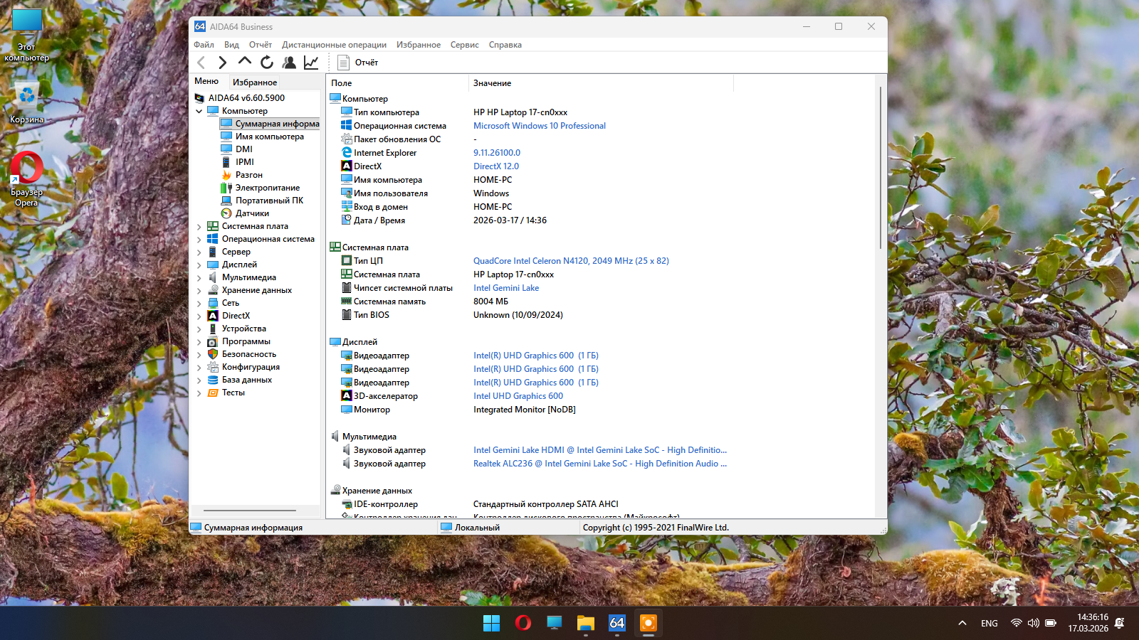 - Процессор: Intel® Celeron® N4120 (4 ядра / 4 потока).